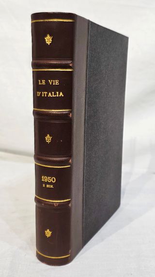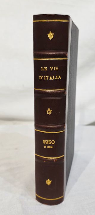 Le vie d’Italia - 1-6, gennaio-giugno 1950, I° volume Le vie d’Italia. Rivista mensile del Touring Club Italiano, Milano, anno 1950. 1-6, gennaio-giugno 1950, 1° volume rilegato, 1 volume. Bellissima rilegature in tutta tela con titoli in oro entro tasselli al dorso. Conservate le brossure originali dei singoli fascicoli. Leggera brunitura della carta, fioriture, minimi aloni, ma nel complesso volumi ottimamente conservati. Formato: altezza 23,5 - larghezza 17,3 - dorso 3 cm.