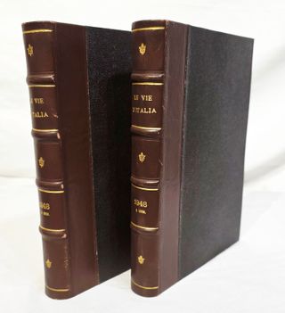 Le vie d’Italia. Rivista mensile del Touring Club Italiano, Milano, anno 1948. 1-12, gennaio-dicembre 1948, annata completa rilegata, 2 volumi. Bellissima rilegature in tutta tela con titoli in oro entro tasselli al dorso. Conservate le brossure originali dei singoli fascicoli. Leggera brunitura della carta, fioriture, minimi aloni, ma nel complesso volumi ottimamente conservati. Formato: altezza 23,5 - larghezza 17,3 - dorso 3 cm.