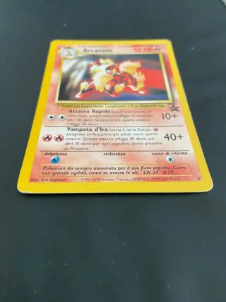 Carta in ottime condizioni Carta Pokémon Arcanine, edizione Promo Black Star. - Arcanine, Fase 1, Evolve da Growlithe. - PV: 70. - Attacco Rapido: infligge 10 danni (testa) o 10 danni (croce). - Vampata d'Ira: infligge 40 danni più 10 danni per ogni segnalino danno. - Livello 34, #59. - Illustrazione di Ken Sugimori.
