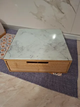 Elegante porta cialde con finitura effetto marmo. - Realizzato in bambù e vetro. - Design moderno con piano effetto marmo. - Cassetto estraibile per un facile accesso.