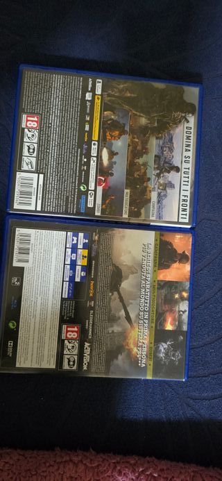 Due giochi per PlayStation: Call of Duty Vanguard per PS5 e Call of Duty WWII per PS4. Se si vuole prendere singolarmente - Call of Duty: Vanguard (PS5) 15€ - Call of Duty: WWII (PS4)10€