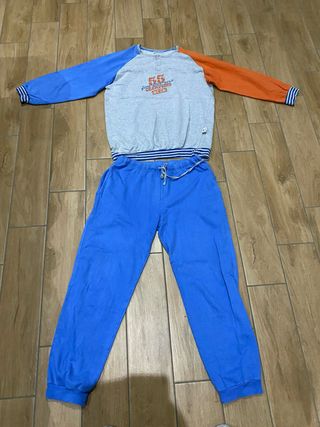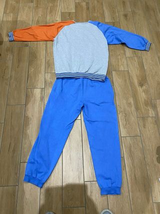 Pigiama composto da maglia a maniche lunghe e pantaloni. - Maglia con inserti color arancione e blu. - Pantaloni lunghi blu. - Stampa sul davanti della maglia.
