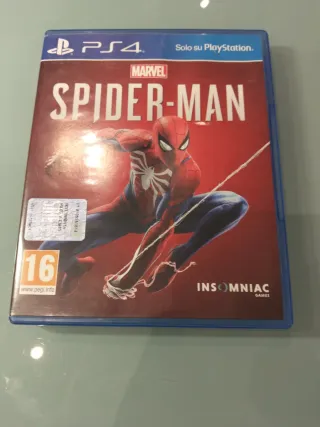 Gioco per PlayStation 4 Marvel's Spider-Man. - Copertina con Spider-Man in azione. - Logo Insomniac Games. - Classificazione PEGI 16.