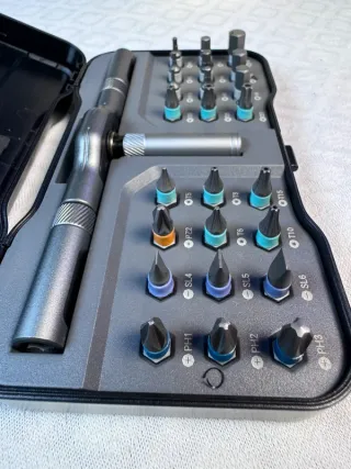 Set di cacciavite con inserti di varie misure. - Inserti inclusi: PH1, PH2, PH3, PZ2, T5, T6, T10, T15, SL4, SL5, SL6. - Manico ergonomico per una presa comoda. - Custodia rigida per un facile trasporto e organizzazione. Articolo nuovo come da foto per info D.M. Seguimi per altri articoli PROD-200 Lada2