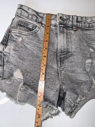 Pantaloncini in denim con lavaggio effetto stone wash. - Vita alta - Effetto strappato - Vestibilità comoda PROD-278 Box