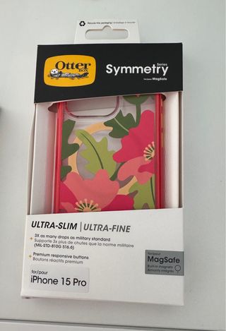 Cover Otterbox Symmetry per iPhone 15 Pro, con sistema MagSafe integrato. Design ULTRA-SLIM e ULTRA-FINE. - Protezione 3X contro le cadute (standard militare MIL-STD-810G 516.6). - Pulsanti reattivi premium. - Compatibile con MagSafe.
