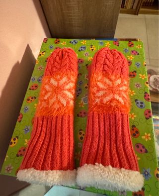 Muffole calde e colorate per bambina, perfette per l'inverno. - Design con fiocco di neve. - Morbida pelliccia bianca sul bordo. - Tricottate a coste sul polsino.
