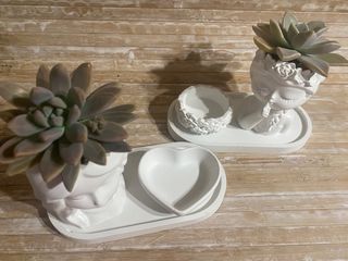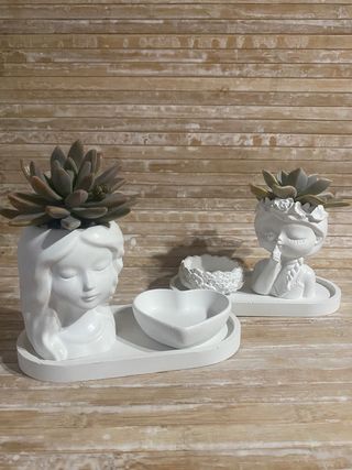 Bellissimi vasetti in cemento, perfetti per piccole piante grasse. Sono due pezzi, di forma geometrica e colore bianco. Ideali per decorare casa o balcone. - Realizzati in cemento - Colore bianco - Forma geometrica - Perfetti per piante succulente