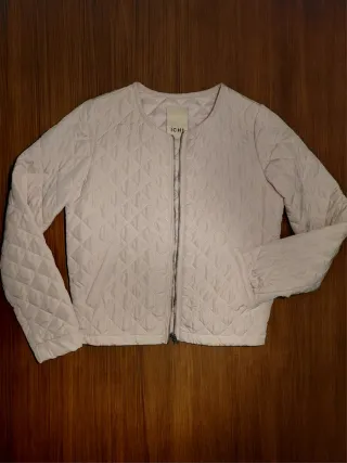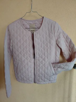 Giubetto trapuntato da donna, marca ICHI, colore rosa antico, chiusura con cerniera ed elastico in vita e nei polsi. Taglia 34, lunghezza 56 cm, larghezza spalle 37cm, maniche 62 cm. Praticamente come nuovo, mai usato.