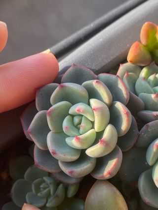 Bellissima pianta succulenta, perfetta per aggiungere un tocco di verde alla tua casa. - Foglie carnose di colore verde-azzurro. - Margini delle foglie con sfumature rosse. - Crescita a rosetta compatta.