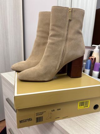 Eleganti stivaletti Michael Kors in camoscio. - Materiale: Faux Leather - Colore: Camel - Chiusura con zip laterale - Tacco squadrato effetto legno