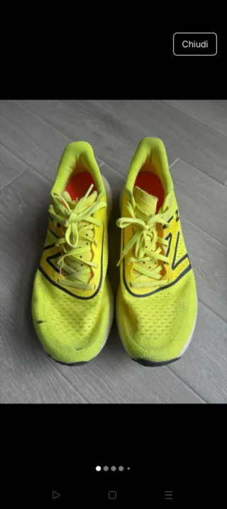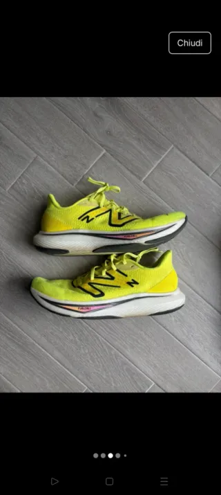 Scarpe da corsa New Balance in un vivace colore giallo. - Modello con tecnologia Carbon. - Design sportivo e moderno. - Suola con tecnologia FuelCell. Tomaia rovinata nella parte anteriore del piede destro