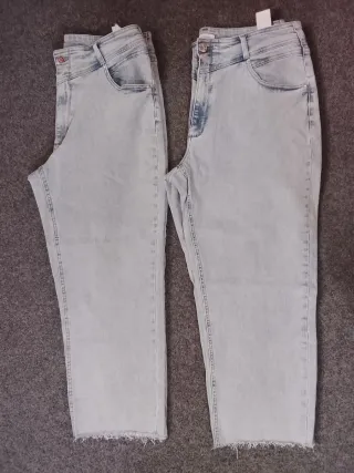 Jeans Lascana in ottime condizioni, pronti per essere indossati. - Modello a vita alta. - Gamba dritta. - Fondo con sfrangiatura. - Tessuto denim.