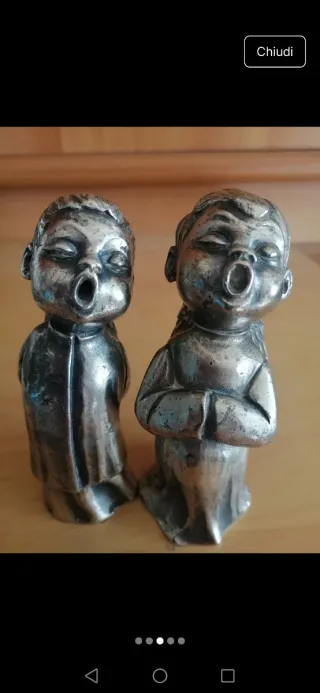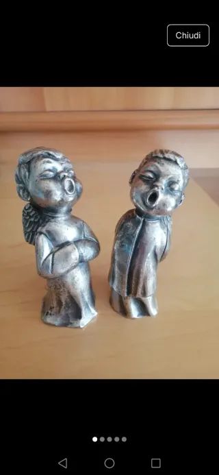 Coppia di angeli in peltro, perfetti per decorare altezza 15 cm. Peso kg. 1.5 in totale. Splendidi vicino ad un candelabro, sul caminetto, su un mobile antico o sulla Tavola di Natale vicino al centrotavola.... - Materiale: peltro - Quantità: 2 pezzi