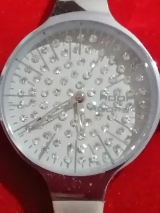 Orologio da polso Hoops con cinturino sottile beige. Il quadrante è decorato con strass. - Cinturino in materiale resistente. - Quadrante rotondo con decorazioni scintillanti. - Nuovo e carico .