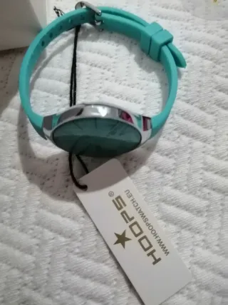 Orologio Hoops con cinturino color verde acqua e cassa argentata. - Quadrante rotondo. - Design minimalista.