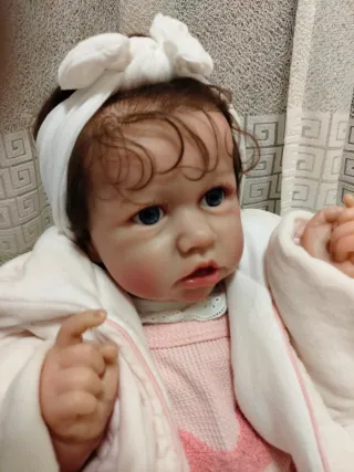 Bambola Reborn realistica, perfetta per collezionisti o come regalo speciale. Include diversi accessori per prendersene cura. - Bambola con dettagli curati. - Accessori inclusi: biberon, ciuccio, spazzola, pettine e vestiti. - Morbida e piacevole al tattototslmente in vinile.e misura 55 centimetri