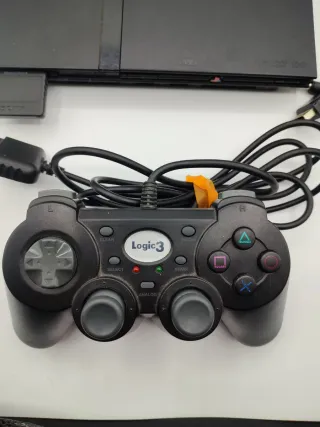 Console PlayStation 2 testata e funzionante completa di tre giochi. - Giochi inclusi: Dragon Quest L'odissea del Re naledetto Xiaolin Showdown Racing Simulation Three - Un controller Logic3. - Cavi di collegamento inclusi.