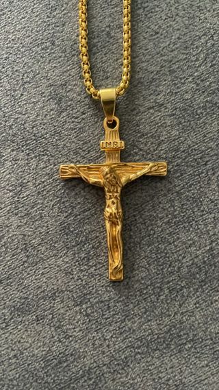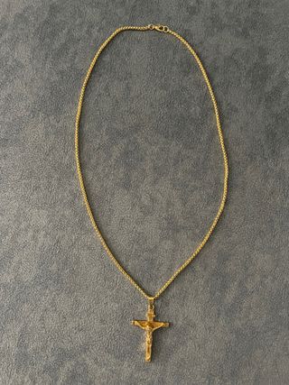 Elegante collana con ciondolo a forma di crocefisso. - Catena a maglia sottile. - Ciondolo dettagliato.
