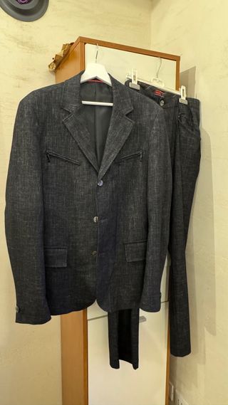 Elegante completo uomo composto da giacca e pantalone, realizzato in Italia tg 52 - Giacca con chiusura a tre bottoni. - Tasche frontali con zip sulla giacca. - Pantaloni dal taglio classico.