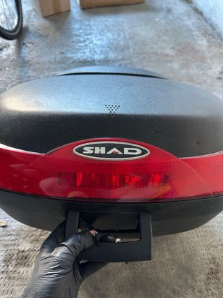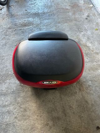 Bauletto per moto marca SHAD. - Colore nero e rosso. - Design moderno e funzionale. Non ha graffi evidenti • Chiave originale + seconda chiave • Piastra SHAD inclusa • Schienalino passeggero (presente)