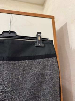 Gonna al ginocchio con dettagli in ecopelle. - Tessuto grigio mélange. - Fascia in vita in ecopelle nera. - Linea dritta.