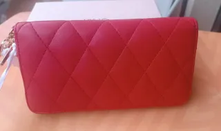 Elegante portafoglio Liu Jo, perfetto per organizzare le tue carte e contanti. - Design trapuntato con motivo a rombi. - Logo Liu Jo dorato sul davanti. - Chiusura con zip. - Dettaglio charm dorato. - Include cartellino originale.