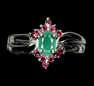 Anello Argento 925 con Smeraldo e Granato Naturali