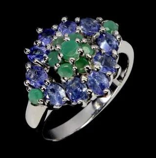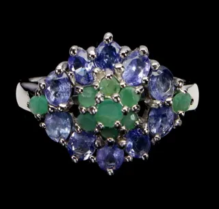 Anello Argento con Tanzanite e Smeraldi Naturali