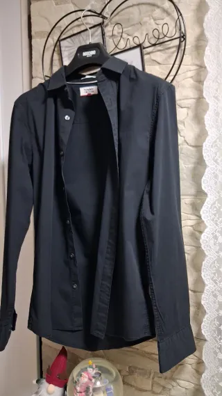 Camicia da uomo Tommy Hilfiger in tinta unita nera. Slim fit - Maniche lunghe. - Chiusura con bottoni. - Collo classico.Taglia M.Perfetto stato