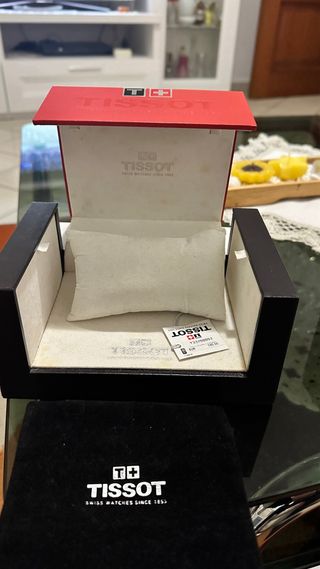 Scatola per orologio Tissot Timeline, ideale per conservare o esporre il tuo orologio. - Design nero con dettagli Timeline e immagini storiche. - Marchio Tissot ben visibile. Questa scatola Tissot T Touch completo di tutto scatola, contro scatola, cuscino orologio, suoi libretti e anche il suo libretto di istruzione originale della Tissot T Touch, e anche la custodia in pelle camoscio dell'orologio. Insomma è completo di tutto.
