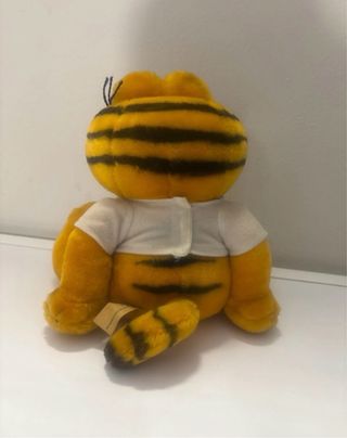 Peluche vintage di Garfield, un classico del 1978. Indossa una maglietta con la scritta i'm not FAT i'm underTALL!. - Materiale morbido e colorato. - Design iconico del personaggio. - Perfetto per collezionisti.