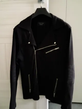Giacca da uomo Zara dal design moderno. - Chiusura asimmetrica con zip. - Tasche frontali con zip. - Dettagli trapuntati sulle maniche.
