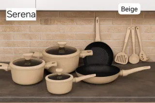 Set Pentole 11 Pezzi Beige o grigio o nero