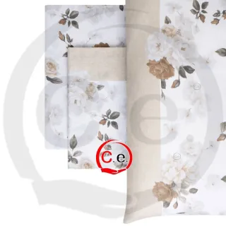 Lenzuola floreali beige e bianche