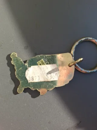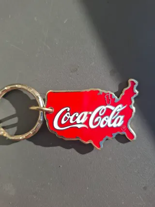 Portachiavi a forma di Stati Uniti con logo Coca Cola 1987 - Design vintage. - Colore rosso con dettagli bianchi e argentati.