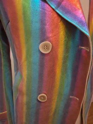 Soprabito con un vivace design a righe arcobaleno. - Design a doppio petto. - Dettagli con bottoni sui polsini. - Cintura in vita.