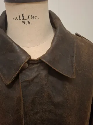 Giacca in pelle vintage dal look vissuto. - Design classico. - Collo a camicia. - Tasche frontali con patta.