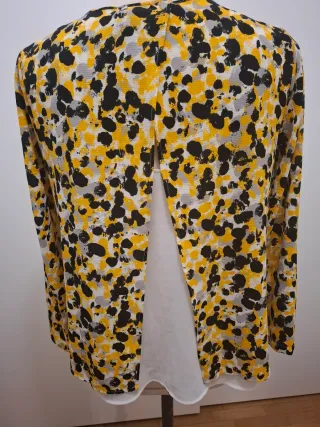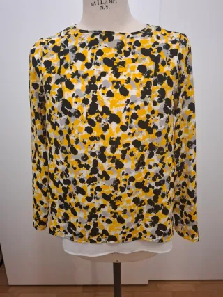 Blusa H&M con un vibrante estampado abstracto. - Diseño de manga larga. - Cuello redondo. - Tejido ligero y cómodo.