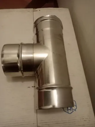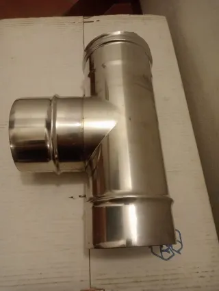 tee in acciaio inox diametro 120 (DISPONIBILI ANCHE ALTRI PEZZI TUBI DA ML 1 CURVE SNODATE PEZZI DA 25CM TEE ISPEZIONE CHIEDETE PURE)