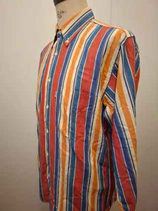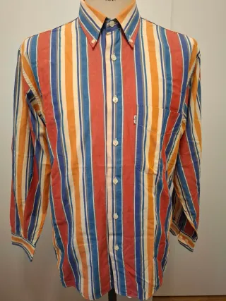 Camicia a maniche lunghe Levi's con un vivace motivo a righe.Anno 1994 - Fantasia a righe verticali. - Colori vivaci. - Tessuto confortevole.