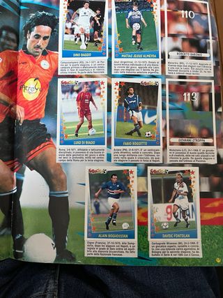Album Panini Calciatori 1998-99. ci sono 99 figurina - Copertina con i calciatori dell'epoca. - Edizione per il campionato italiano di Serie A, B, C1, C2.