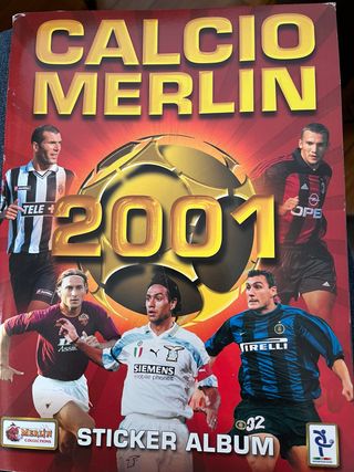 Album di figurine Calcio Merlin del 2001. completo al 60% - Copertina con i calciatori. - Anno 2001.