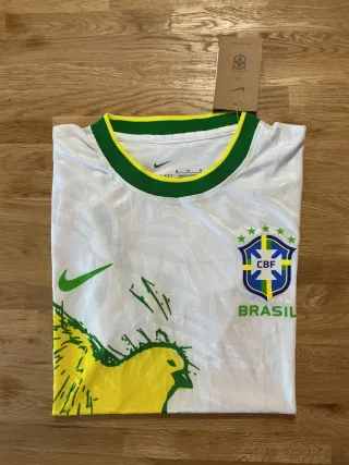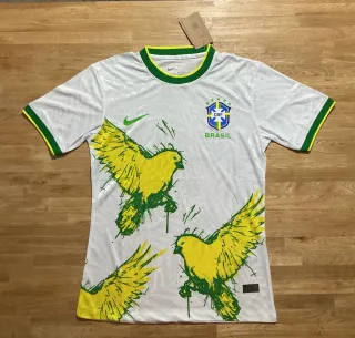 Maglia da calcio del Brasile, edizione speciale con grafica ispirata al pappagallo. - Design unico e colorato. - Collo e maniche con dettagli verdi e gialli. - Logo Nike e stemma CBF Brasil.