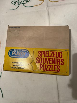 Scatola vintage PUSSY per giocattoli, souvenir e puzzle. - Made in West Germany - Anregend, spannend, unterhaltend