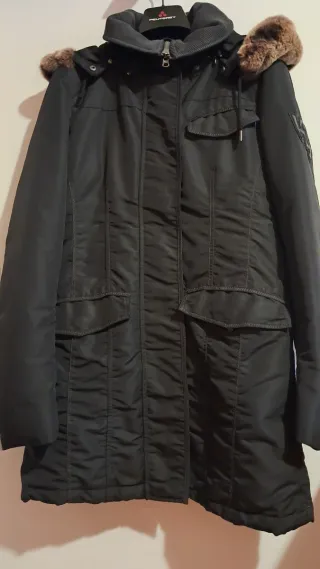 Elegante parka Kejo, perfetta per le giornate più fredde. - Cappuccio con pelliccia. - Tasche frontali con patta. - Chiusura con zip. - Polsini con zip. - Buonissimo stato
