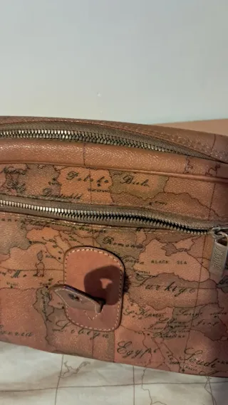 Borsa a tracolla con stampa mappa geografica. - Design unico con stampa di mappe. - Dettagli in pelle. - Chiusura con bottone a pressione- Leggera usura attaccatura tracolla