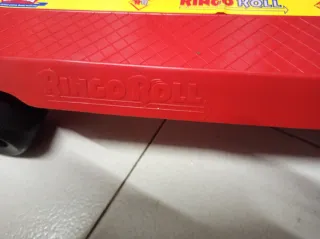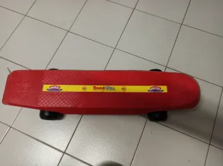 Skateboard pubblicitario Ringo Roll di colore rosso. Anni 80 con raccolta punti, nuovo nella sua scatola - Design con logo Pavesi. - Superficie antiscivolo.