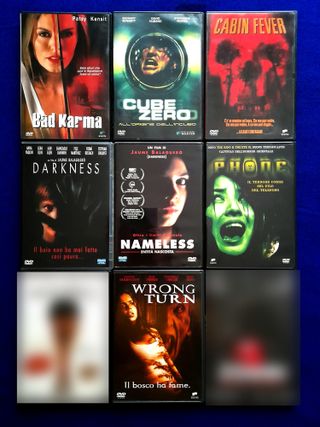 ** NON acquistare l'annuncio, scrivere i titoli interessati ** Serie di DVD di genere horror/thriller/black composto dai seguenti titoli [€4 cadauno]: - Bad Karma - Cube Zero - Cabin Fever - Darkness - Nameless - Phone - Wrong Turn [€4 cadauno] Condizioni pari al nuovo, dischi perfetti. Tutto il set, scontato a €25.