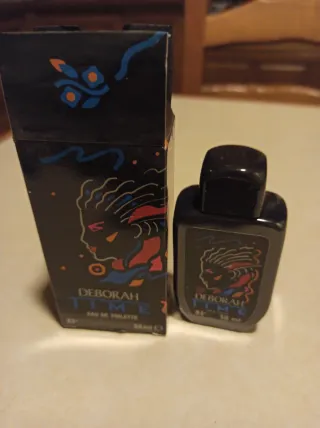 Profumo vintage Deborah Time Eau de Toilette. Raro - Formato da 50 ml. - Design della confezione e del flacone con profilo stilizzato e decorazioni astratte.